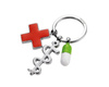 zdrowie zawsze pod ręką – ten brelok to symbol troski i dobrej energii 3 zawieszki medyczne: laska Eskulapa, czerwony krzyż, kolorowa pigułka doskonały prezent „na zdrowie” lub dla każdego związanego z opieką medyczną przymocowany do wysokiej jakości kółka na klucze – dzięki temu nie zgubisz ani kluczy, ani samego breloka wymiary: 83x60x10mm waga: 38g kolor: mix kolorów