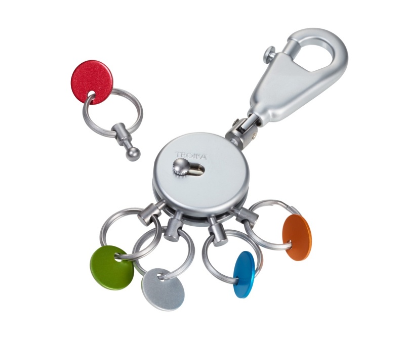 funkcja opatentowanego organizera do kluczy: łatwe zaczepianie i wymiana kółek dla wygodnego korzystania z poszczególnych kluczy, z możliwością rozbudowy o dodatkowe kółka