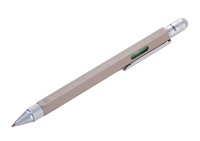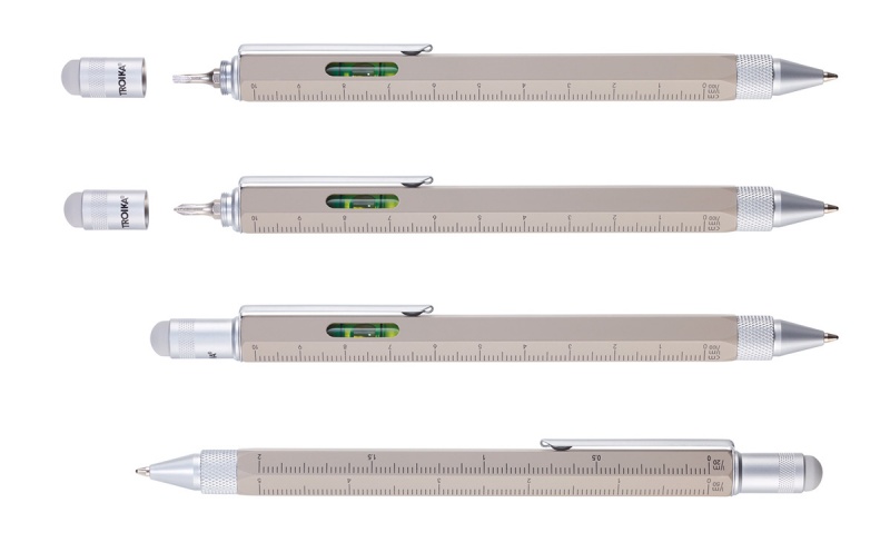 Ten innowacyjny długopis mieści wszystko, czego w danym momencie potrzebujesz: linijka 10 cm i 4 cale, skalę 1:20 i 1:50, poziomicę, śrubokręt płaski i krzyżakowy oraz rysik do ekranów dotykowych.