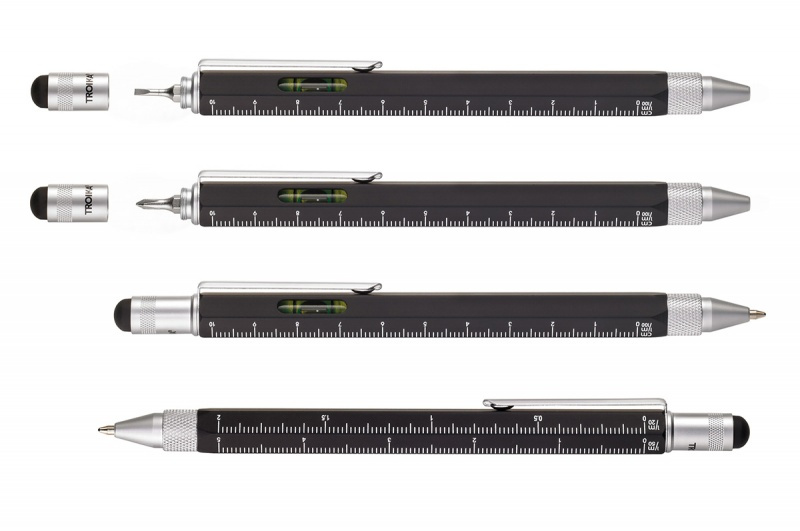 Ten innowacyjny długopis mieści wszystko, czego w danym momencie potrzebujesz: linijka 10 cm i 4 cale, skalę 1:20 i 1:50, poziomicę, śrubokręt płaski i krzyżakowy oraz rysik do ekranów dotykowych.