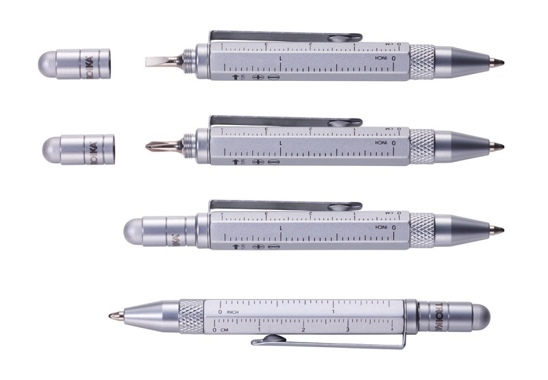 wielofunkcyjny: linijka w centymetrach i calach, śrubokręt płaski i krzyżakowy, rysik do ekranów dotykowych, wkład w kolorze czarnym + 2 zapasowe wkłady