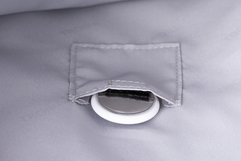 wewnątrz znajdziesz praktyczne przegrody, w tym ukrytą kieszeń na lokalizator AirTag