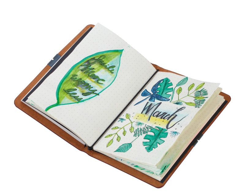 dzięki elastycznym gumkom zeszyty można szybko wymieniać, co sprawia, że bullet journal jest zawsze gotowy do dalszego użytku