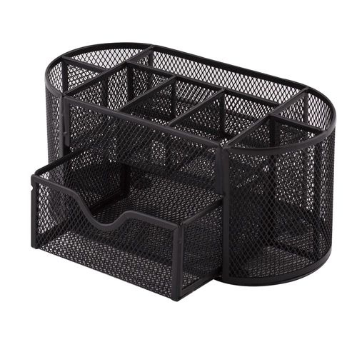 • Metalowy, dziewięciokomorowy przybornik na biurko powleczony czarnym lakierem