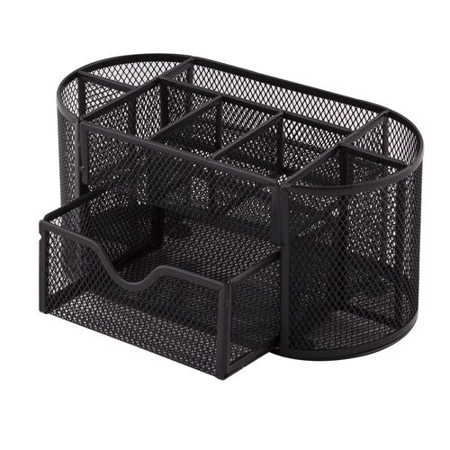 - Metalowy, dziewięciokomorowy przybornik na biurko powleczony czarnym lakierem
