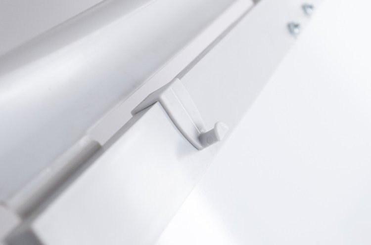 - Możliwość zawieszenia bloku poprzez płynną regulację rozstawu haków (ukrytych pod przednim ruchomym panelem)